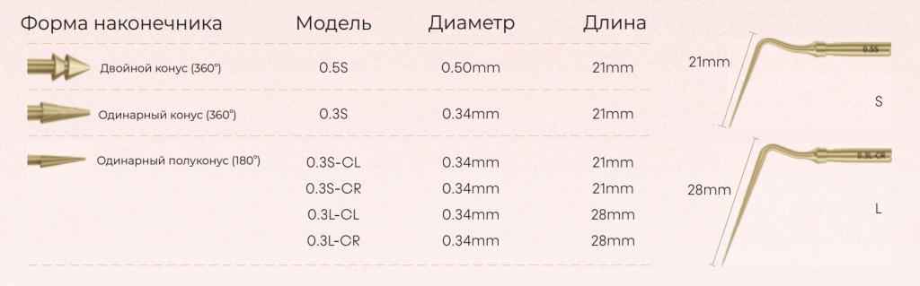 Рабочие насадки подбираются исходя из клинической ситуации, с учетом диаметра корневого канала и степени его наполнения гуттаперчей. - Высококачественные материалы